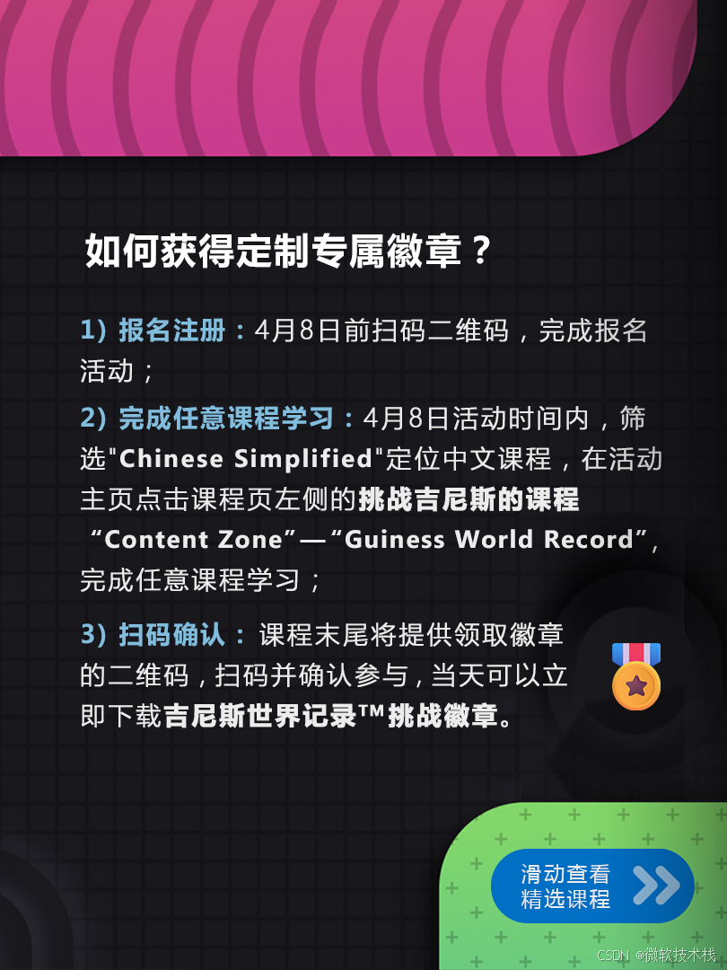 → 课程末尾将提供领取挑战徽章的二维码。