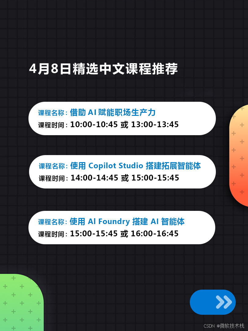 👉立即注册报名课程,提升AI应用技能,释放你的创造力,掌握核心技能,让你在AI时代更具竞争力。Microsoft AI Skills Fest China